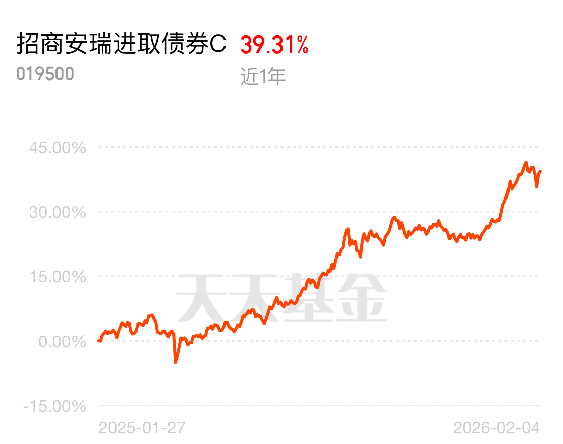 招商安瑞进取债券 C 近一年 39.31%,把好多固收 + 都比下去了,基金经理多年转债经验,主动控风险,招商固收背书,慢牛行情拿着超合适。