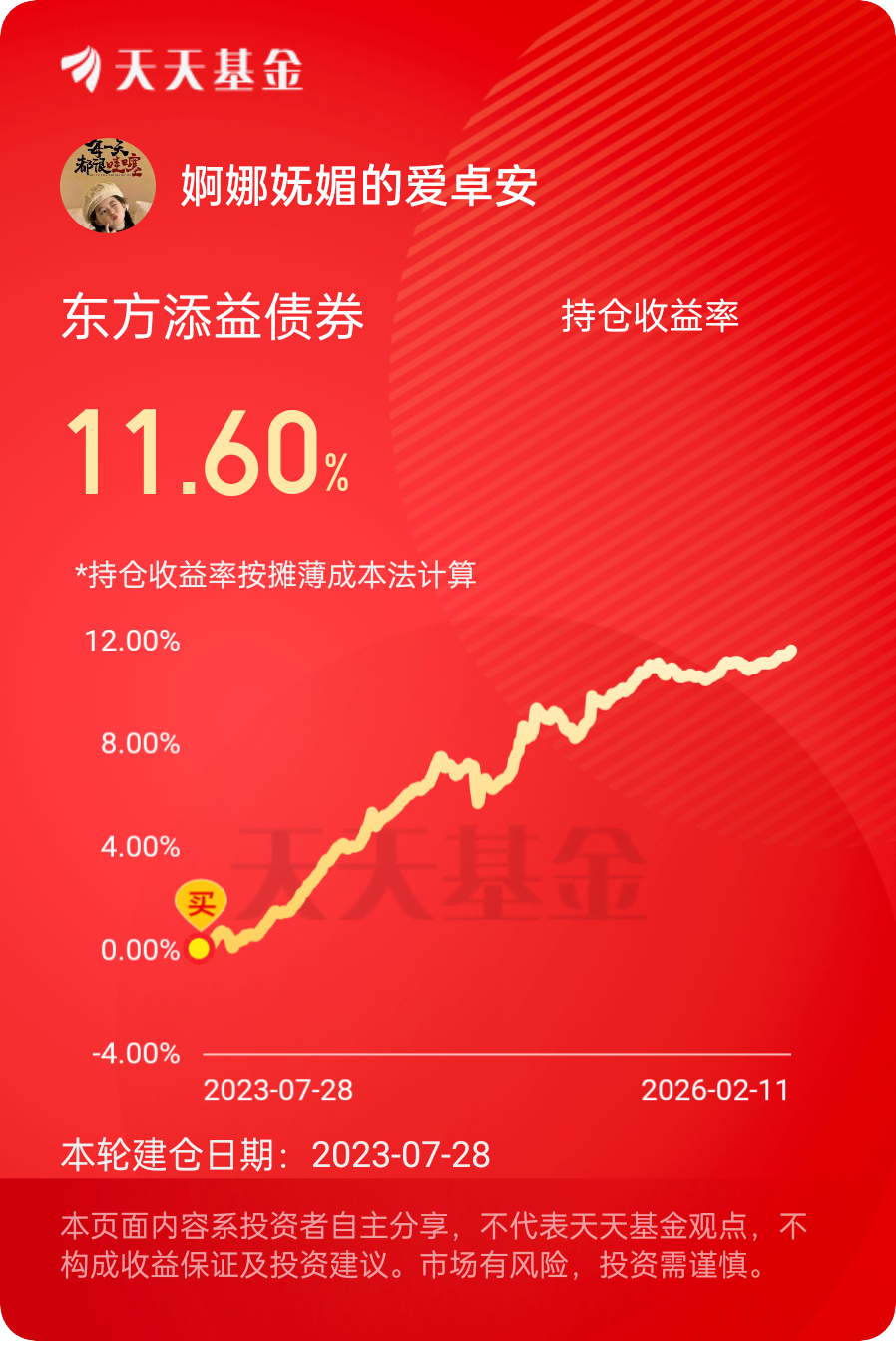 近期债市暖意融融,昨日信用债与利率债全线飘红,多数债基收获颇丰。债基风险低、波动小,是追求稳健的安心之选,持仓更放心。$东方添益债券$ #晒收益#