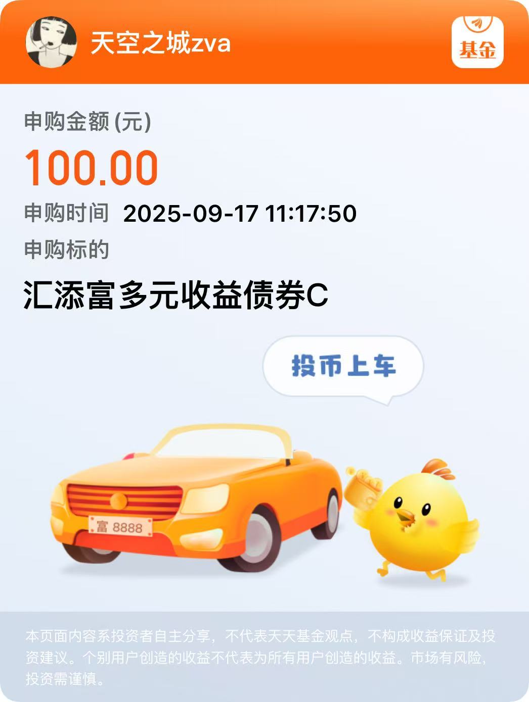 比如我今天上车的汇添富多元收益债券C,后面继续买!