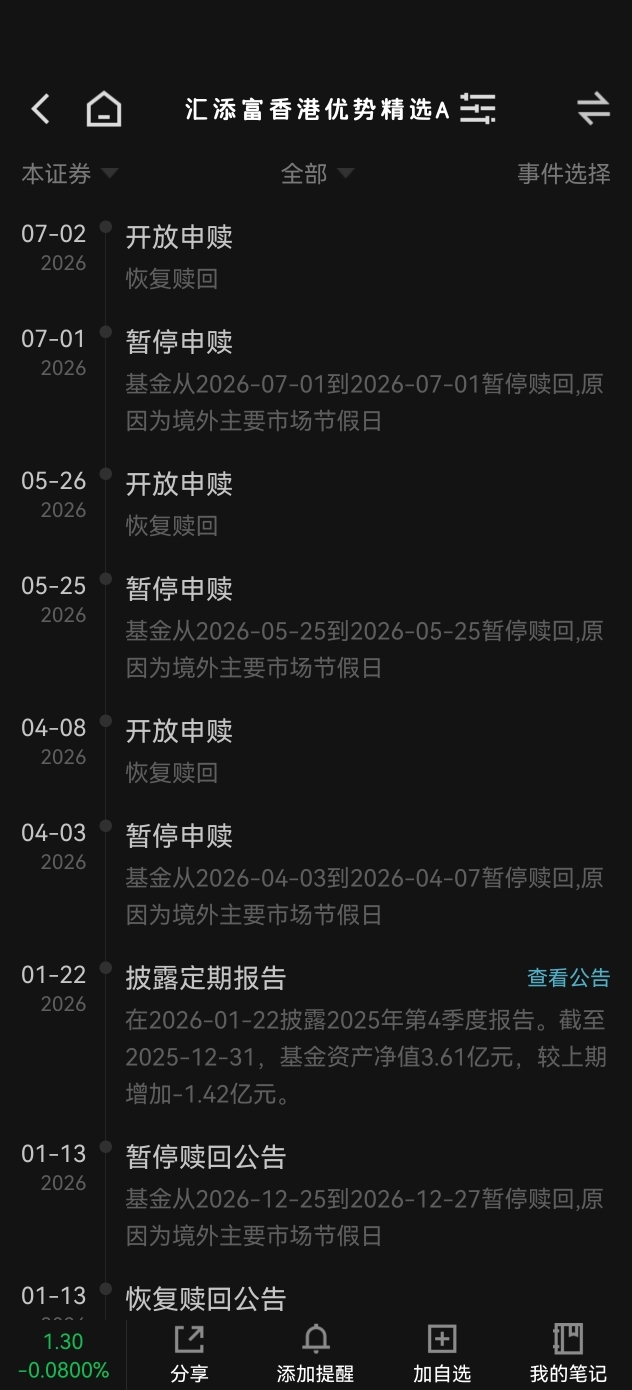 汇添富香港优势精选混合(QDII)A/C 2026年开放申购/赎回时间公告