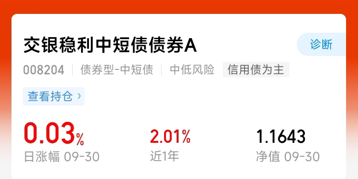 $交银稳利中短债债券A$它是信用债为主,安全可靠,收益也有稳定!
