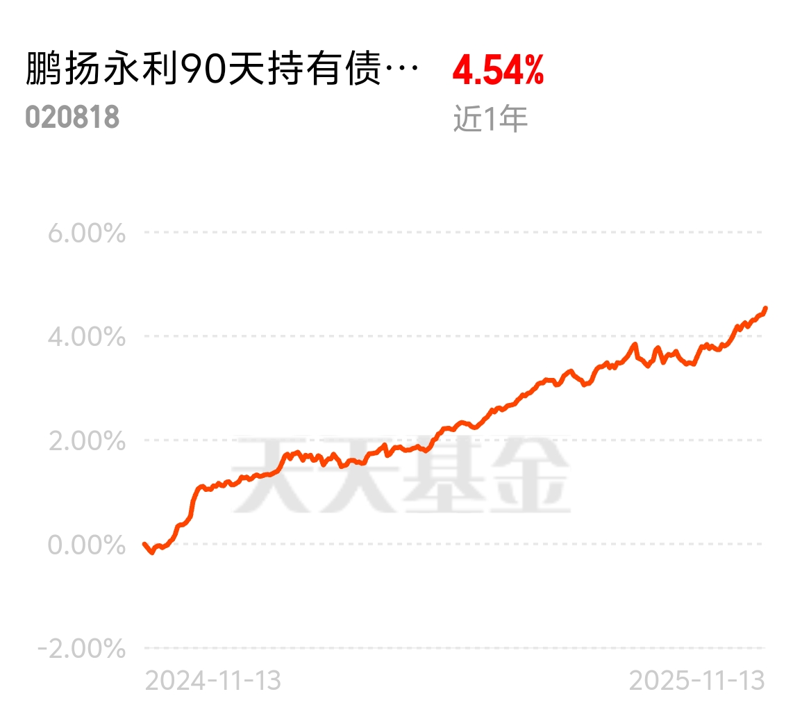 今年混合债收益不错嘛,鹏扬永利近一年4.54%,债券非常舒适
