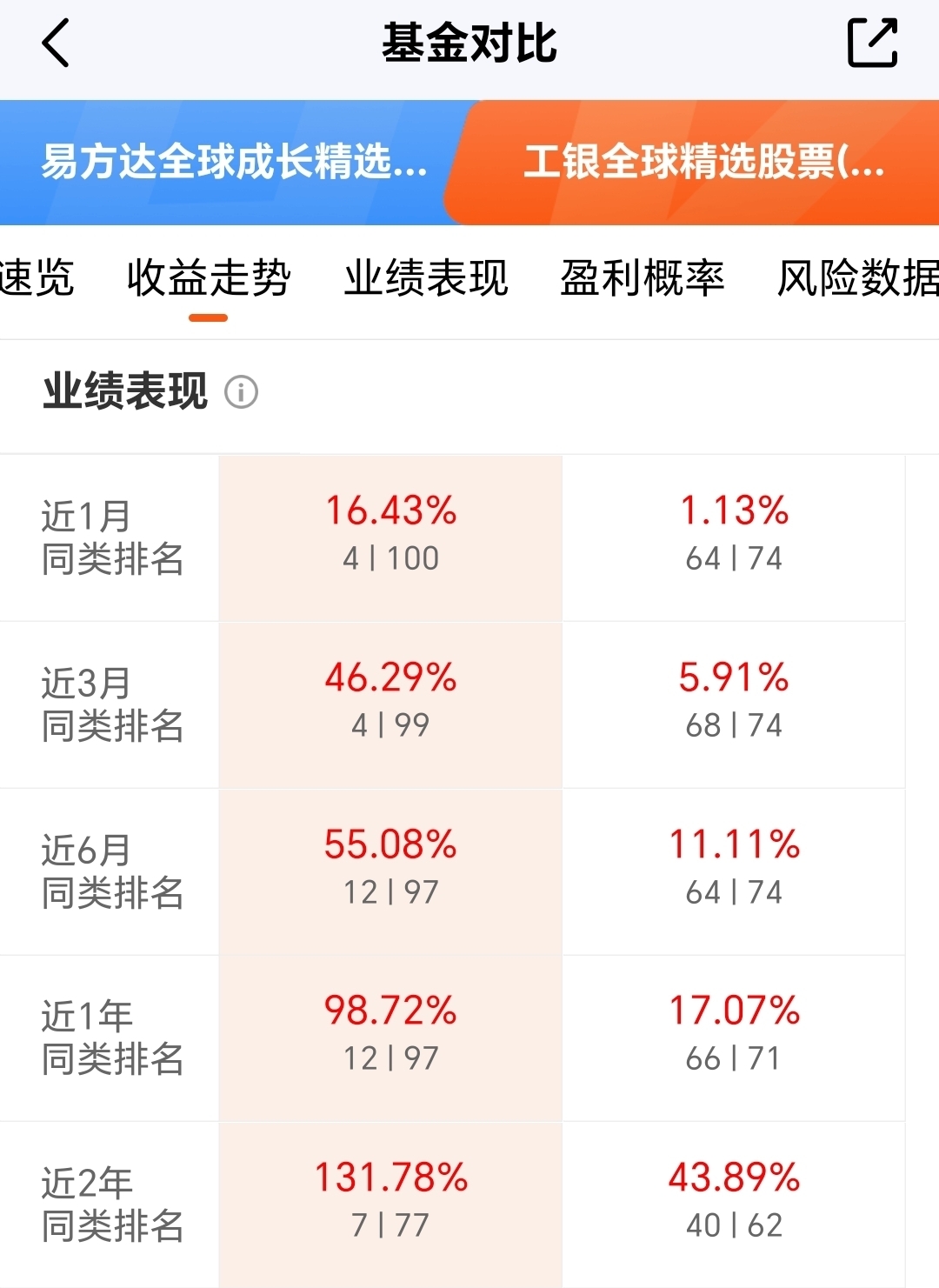 $易方达全球成长精选混合(QDII)人民币C$ 近一个月收益16.43%,近一年收益98.72%,收益排名靠前的呢。