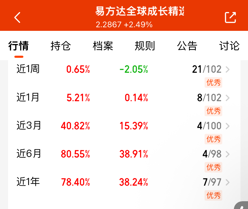 随着降息周期的开启,全球科技类资产有望受益呀,其中我发现易方达全球成长精选混合C整体表现不错,就比如国庆期间它的走势亮眼,大大跑赢美股港股呢,感觉基金经理的持仓能力出众!#机器人新催化?马斯克构建“世界模型”##黄金逼近4200美元!美银:明年5000#$工银全球精选股票(QDII)(OTCFUND|486002)$