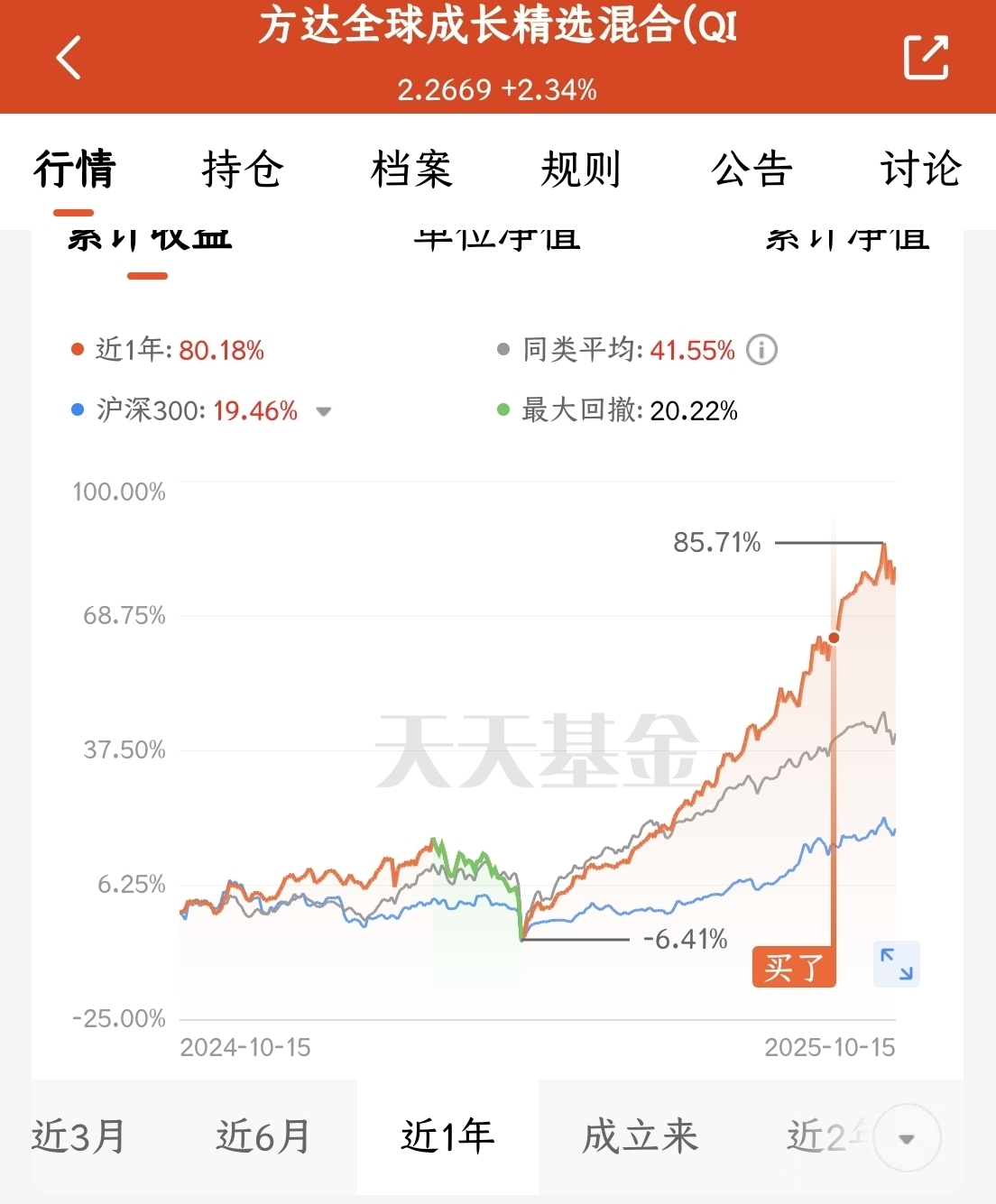 最近股市呈现震荡调整行情,今天低开低走,继续下行,科技板块也是调整不少。为了对冲风险,我打算布局全球科技,$易方达全球成长精选混合(QDII)人民币C$ 就挺不错的,不仅能够大幅跑赢同类产品,业绩也很不错,而且抗回撤能力很强,基金经理审时度势,调仓及时!