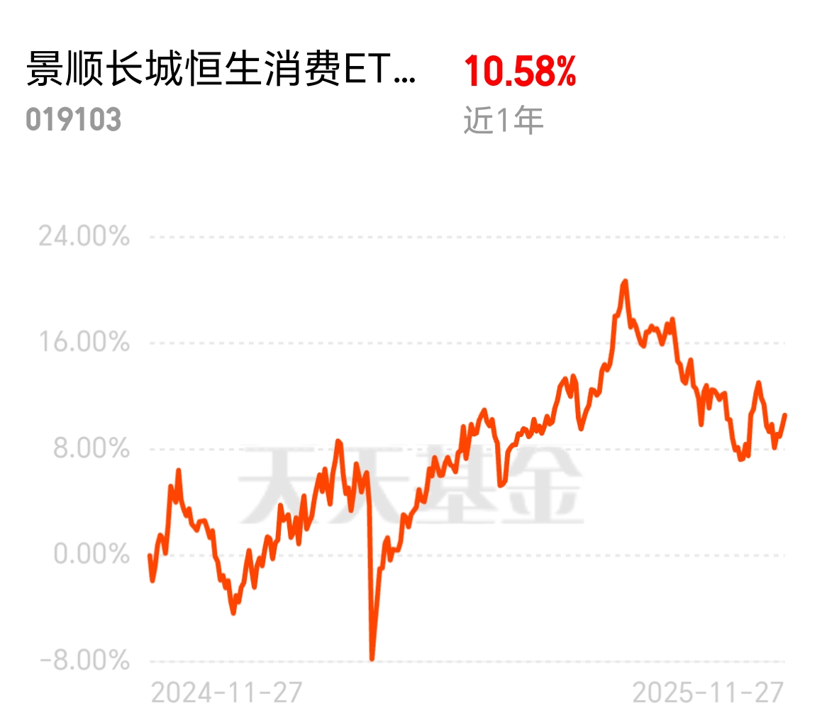 促消费政策持续发力,年底消费市场活跃度提升,带动港股消费板块持续走强,板块投资机会凸显,景顺长城恒生消费ETF联接(QDII)C精准跟踪恒生消费指数,近1年收益10.58%,覆盖各类消费龙头,7天免赎回费,短线布局很合适。