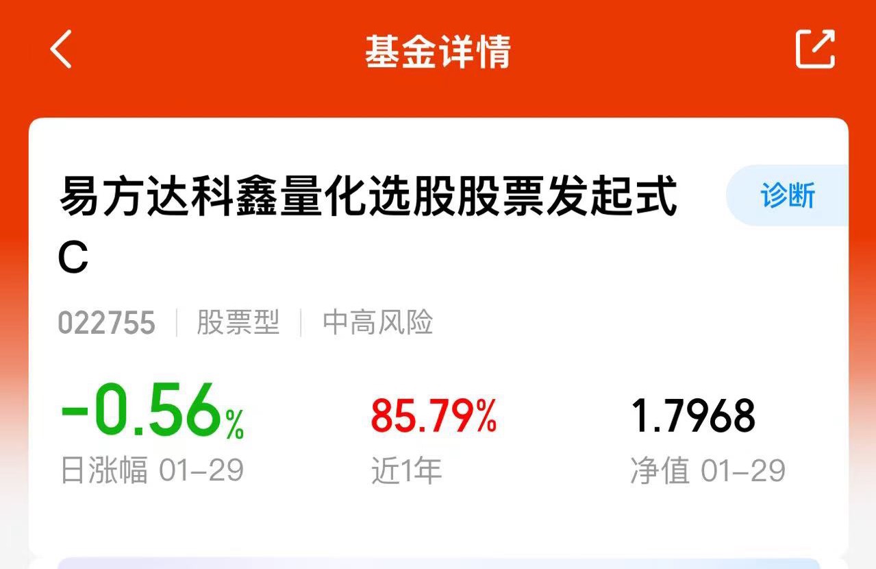今天市场普跌我反倒觉得是补仓好机会,毕竟基本面压根没毛病!$易方达科鑫量化选股股票发起式C$ 太能打了,近一年收益85%+,妥妥跑赢同行,能涨还抗跌。现在市场波动大、轮动快,普通赛道不好抓,不如布局量化吃超额收益,长线拿着优势超明显,趁今天调整上车,挺好的