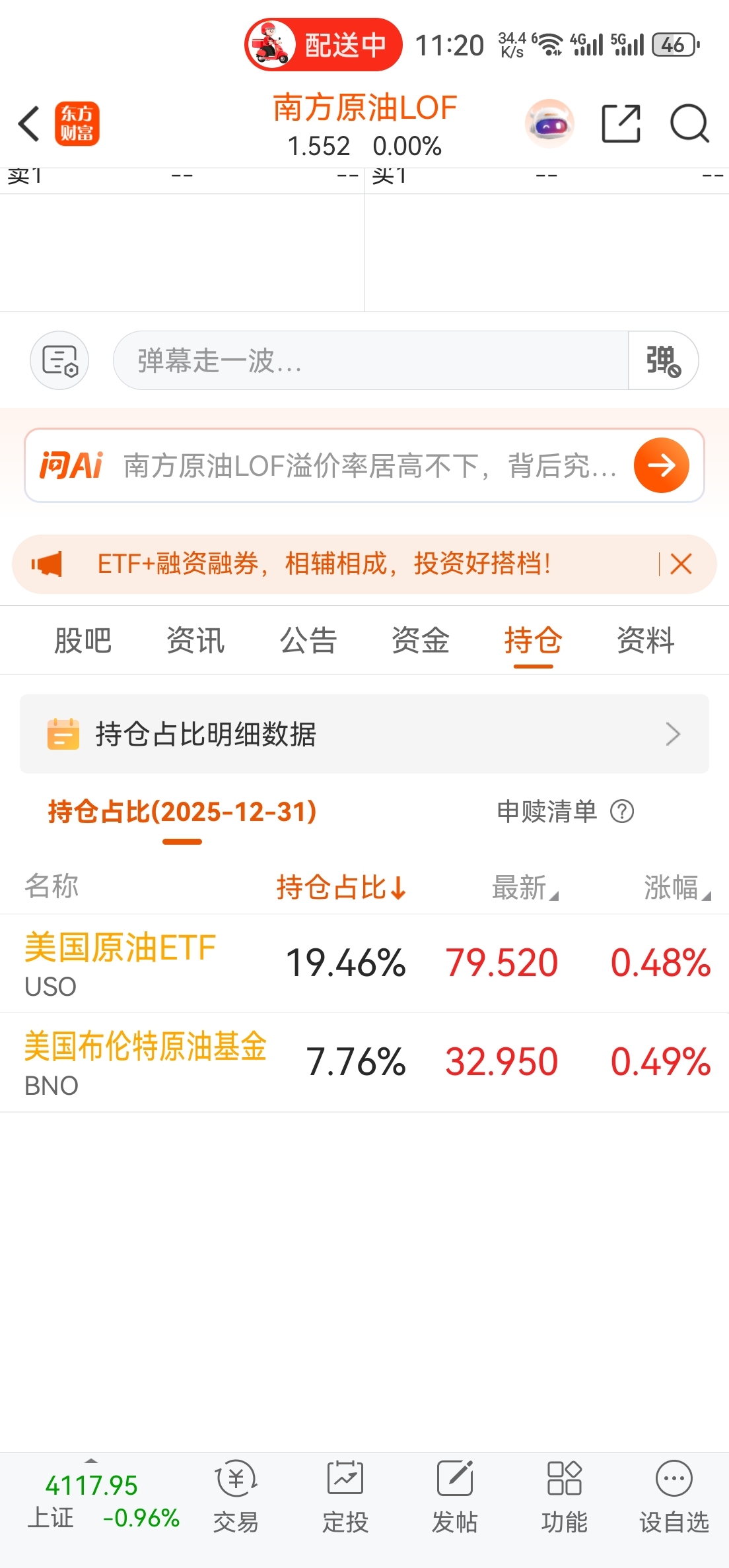 $南方原油LOF(SH501018)$ 说周一跌停因为原油期货跌的,就不会打开这票持仓看看嘛?昨天晚上被黄金白银情绪影响砸跳水,后面资金反应过来已经又拉红了