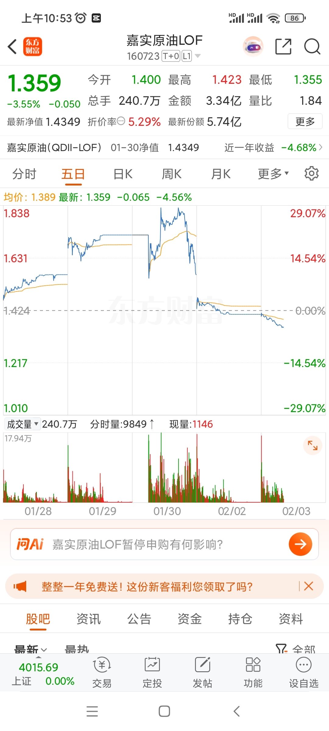 $南方原油LOF(SH501018)$ 同样是原油,周五没停交易,还涨得好好的,今天也没跌停。本来交易赢亏自负,但是别的周五都好好的,南方竟然出损招。以后拉黑南方的所有基金。