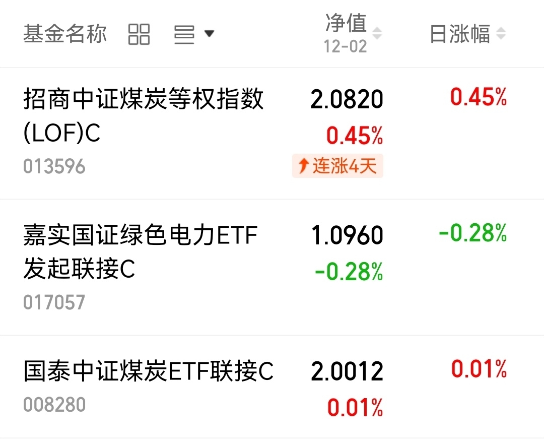 $招商中证煤炭等权指数(LOF)C$ 昨日上涨0.45%