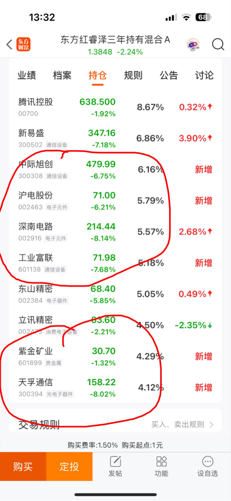 $东方红睿泽三年持有混合A(OTCFUND|501054)$ 我画的这几个全部都是最近三个月涨了几倍十几倍的票,前几天被苗gou最高位接盘了,而且还是重仓高位接盘,今天上午4200家上涨,现在3800家上涨,这个基跌的你们自己看吧