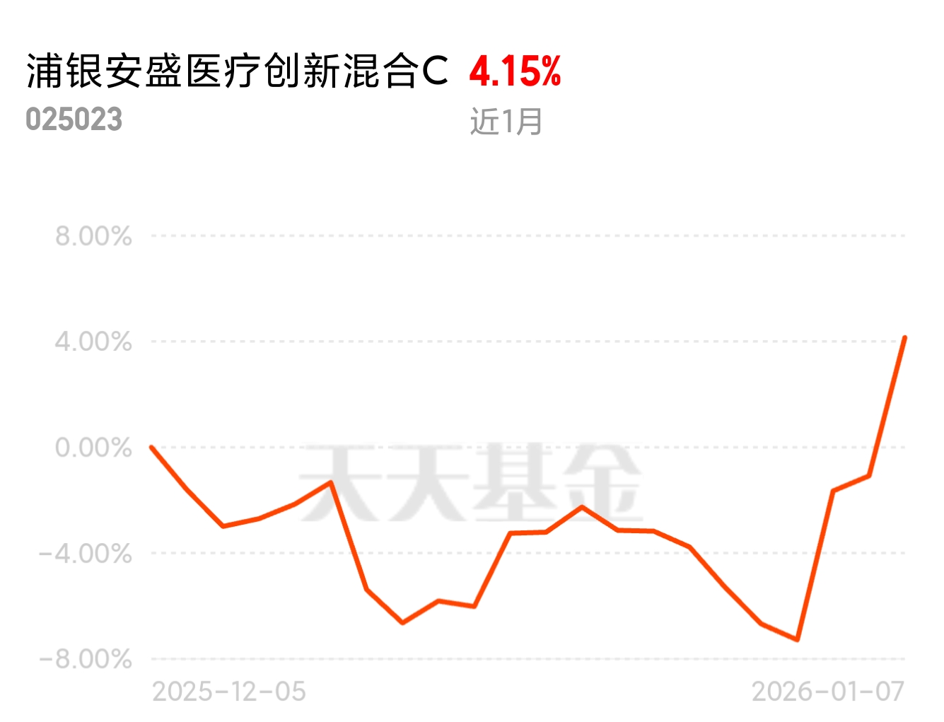 跟紧节奏定投一笔浦银安盛医疗创新,昨天大涨5.29%,近一周就涨了12.32%!新发基没有历史包袱,弹性高,而且创新药有政策的扶持,周一就大涨超6%,后续发展空间很大$浦银安盛医疗创新混合C$