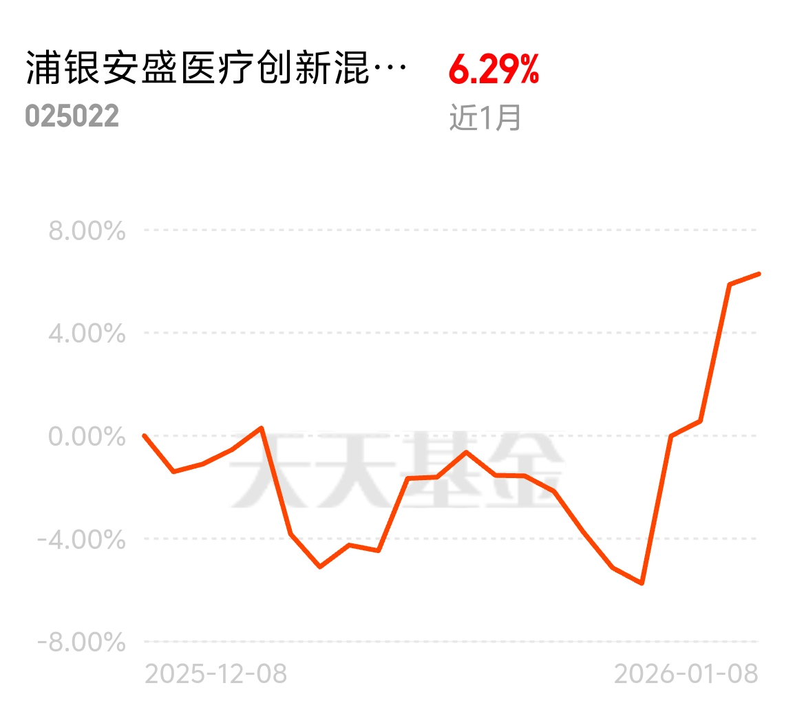 我开了个定投医药$浦银安盛医疗创新混合A$,今天还是红的!周一大涨超6%,近一周