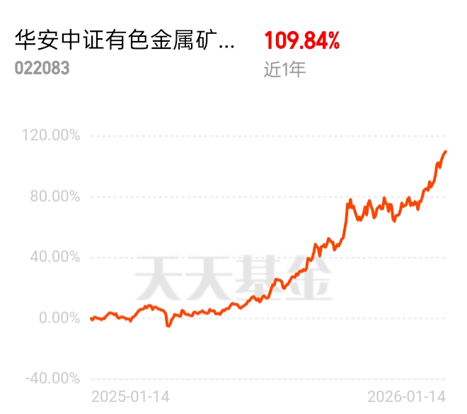 $华安中证有色金属矿业主题指数发起式A$ 纯有色赛道王者!成分股 100% 属有色金属,近月涨 18.62%、近 1 年翻倍 + 109.84%,多周期回报全占优