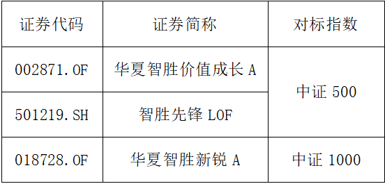 $华夏智胜先锋股票(LOF)A(OTCFUND|501219)$ $华夏智胜新锐股票A(OTCFUND|018728)$ $华夏智胜价值成长A(OTCFUND|002871)$ $易方达沪深300ETF联接A(OTCFUND|110020)$
