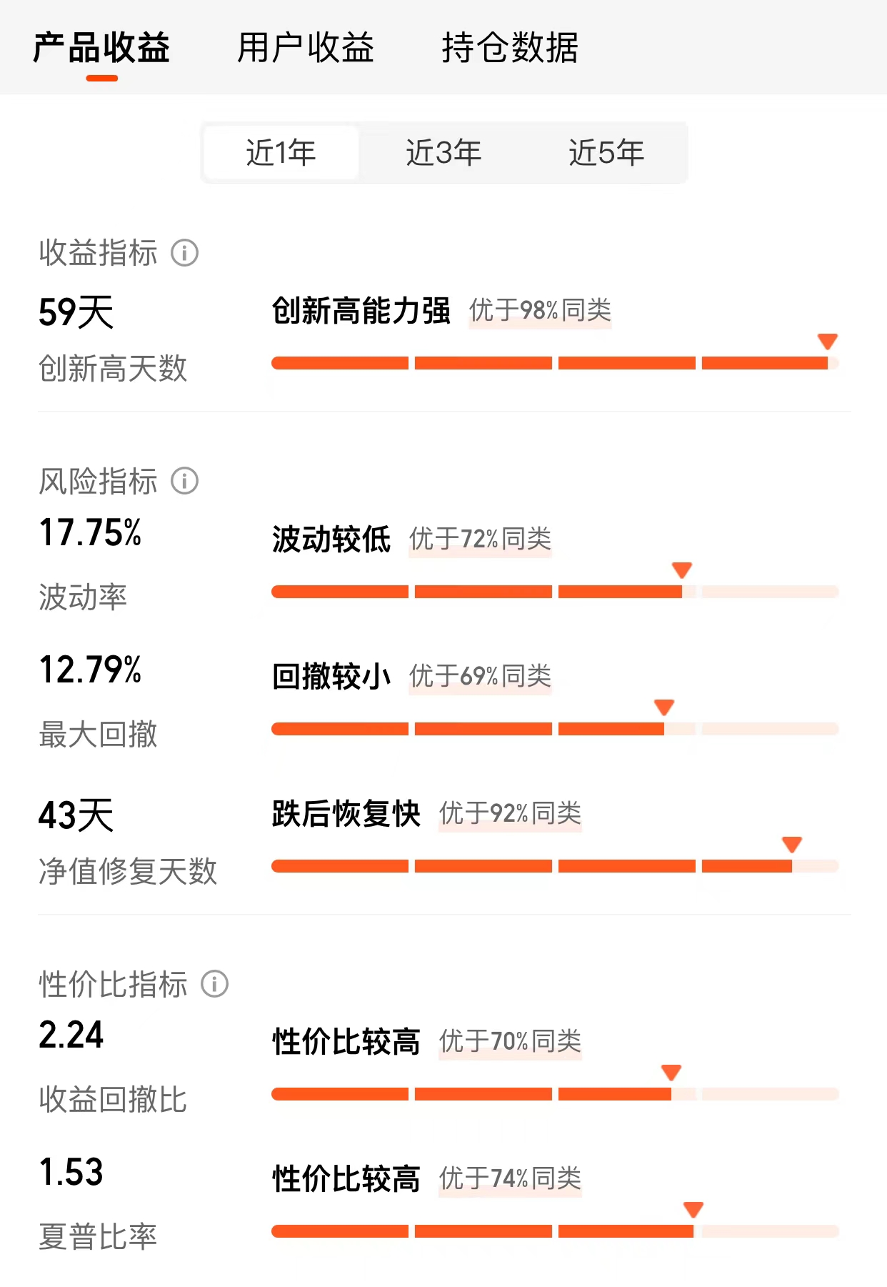 风险指标对比:截至2025年12月18日,基金的近一年标准差为17.75%,低于同类平均的26.8%;夏普比率1.53,高于同类平均的0.76;斤一年最大回撤12.79%,低于同类平均的25.6%。这些指标表明基金在风险控制方面具有相对优势,能够在获取较高收益的同时保持较低的波动性。