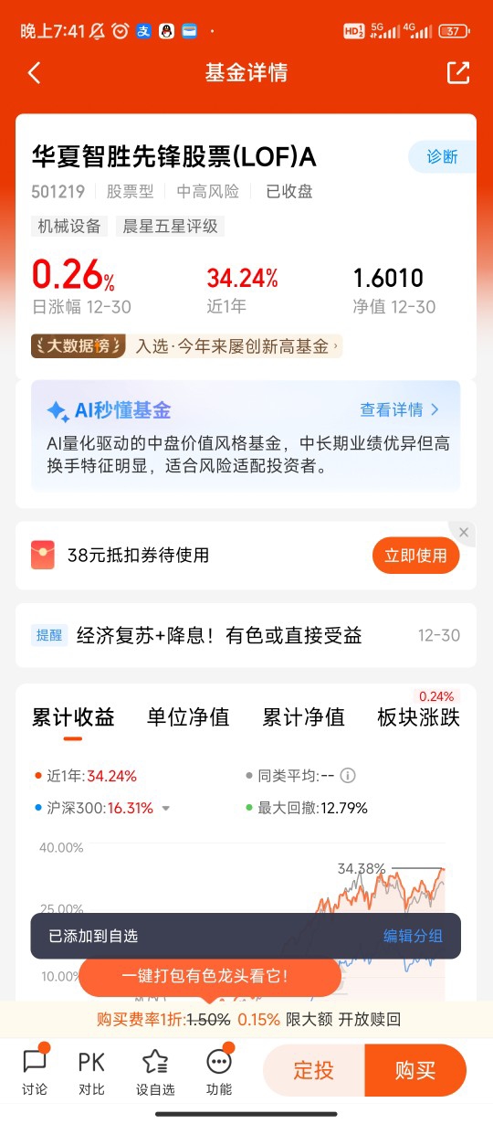总体而言,华夏智胜先锋股票(LOF)A是我心仪的超额收益基,其AI+量化策略经过市场检验,业绩持续稳定,适合追求相对更高收益且能承受一定波动的投资者长期持有。@华夏基金