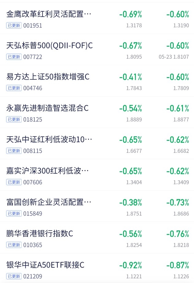 $天弘中证红利低波动100联接C$ 跌0.62%