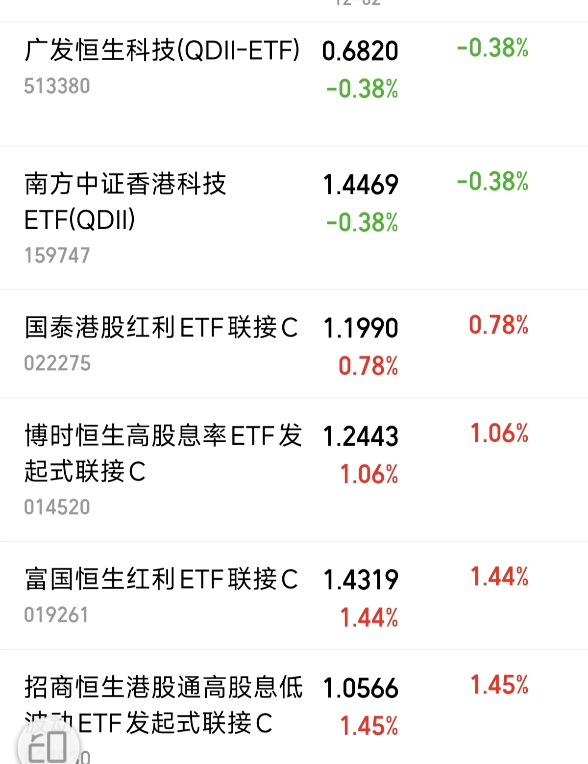 $招商恒生港股通高股息低波动ETF发起式联接C$ 昨天上涨了1.45%。紧密跟踪恒生高股息,低波动指数。聚焦的全部都是稳定的红利资产。期待四季度继续创新高。