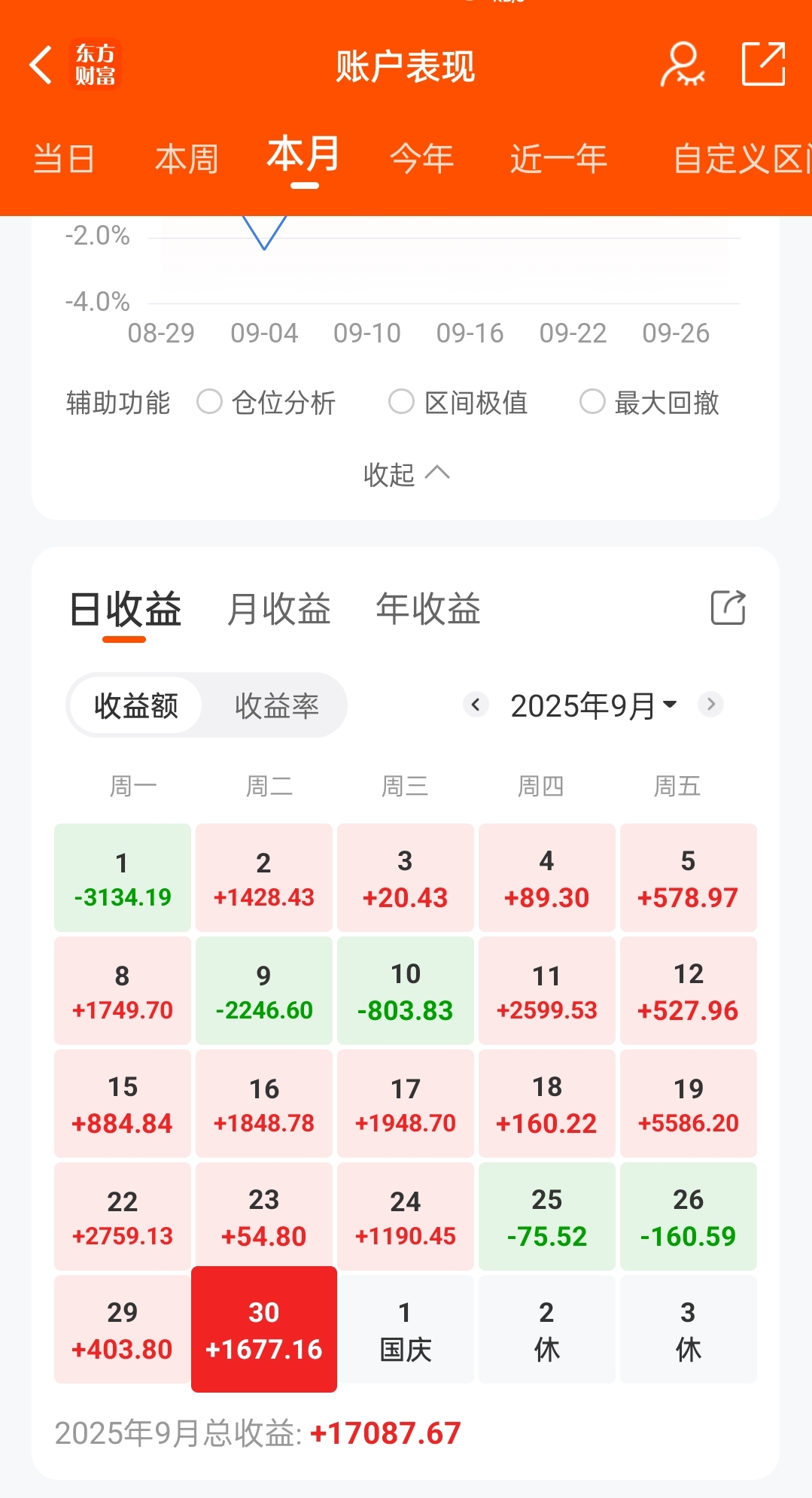 每个月保持这样的收益我就很满足了,除去三千利息。祝大家国庆中秋假期快乐!