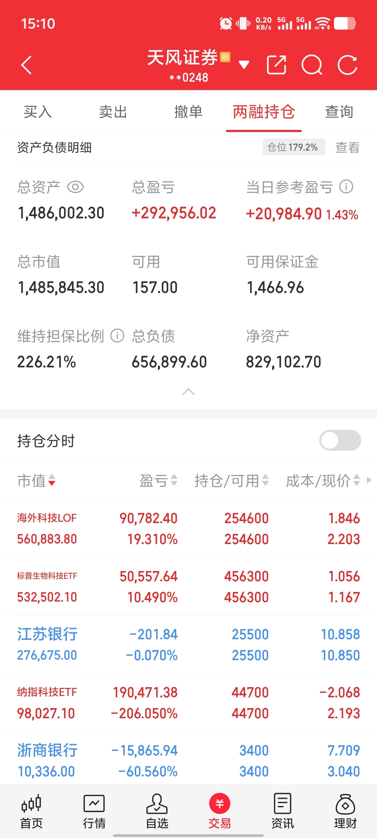 持有的银行股依然是拖后题,今天小幅加仓标普生物科技ETF。各基金总体溢价,比较担