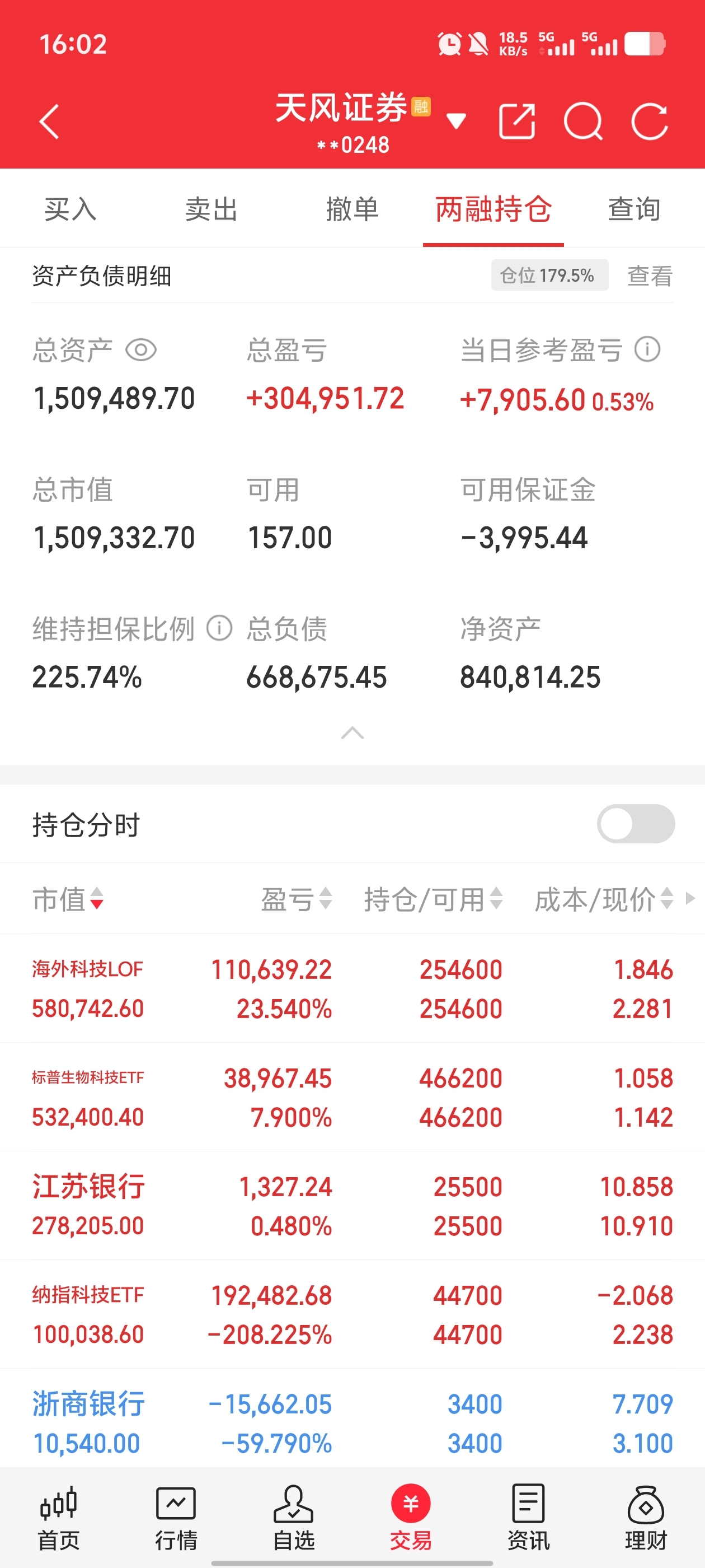 今天无操作,依旧被江苏银行拖后腿;银行股暴跌,海外科技溢价九个点居高不下,一个跌