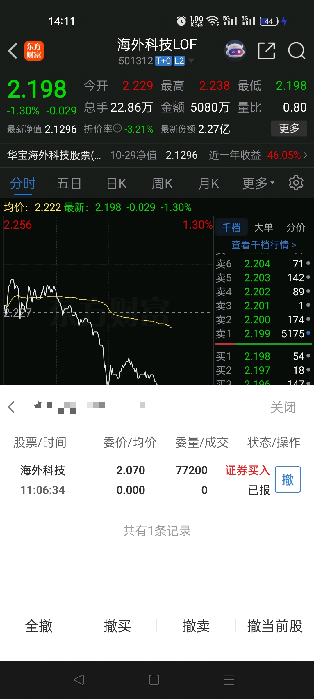 $海外科技LOF(SH501312)$ 万手哥怎么不砸?上午都挂单了