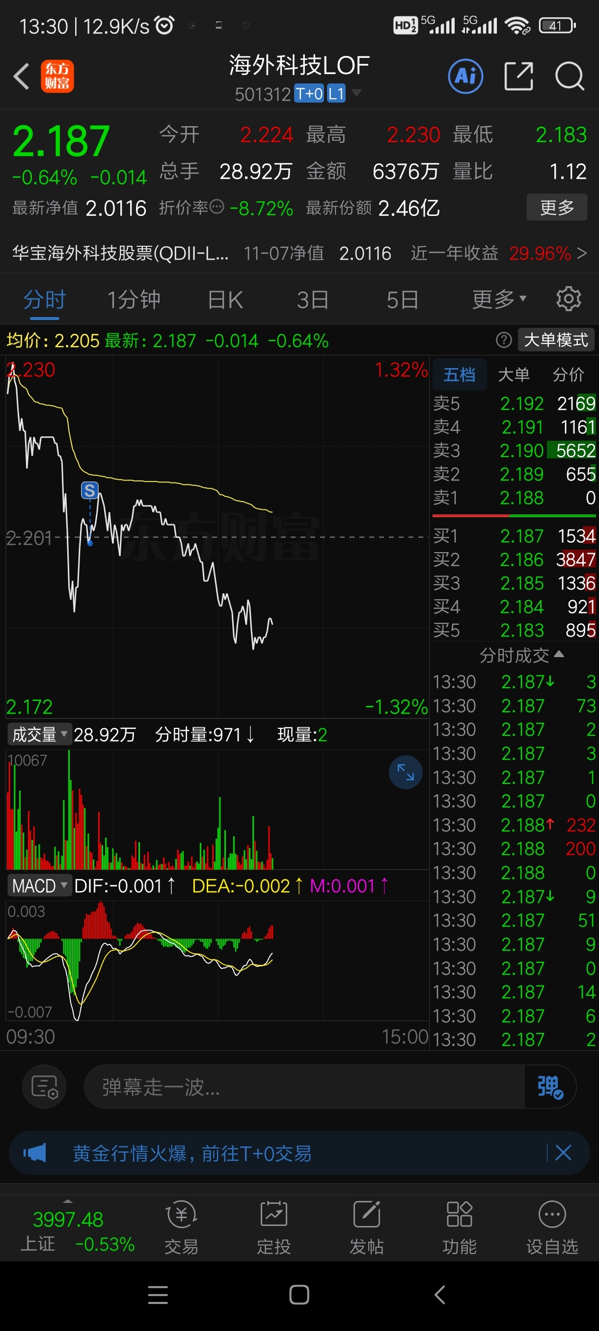 $海外科技LOF(SH501312)$ 跌下来求求了