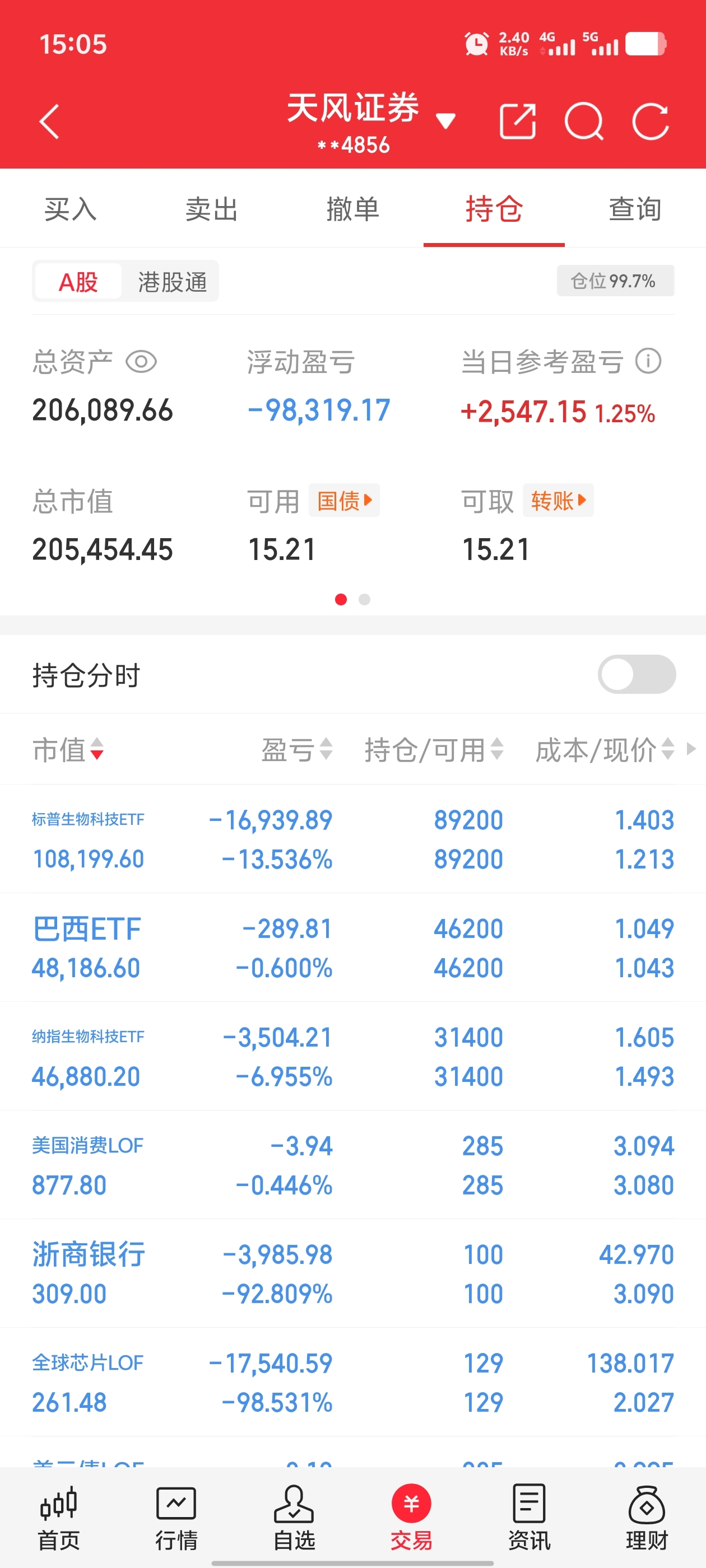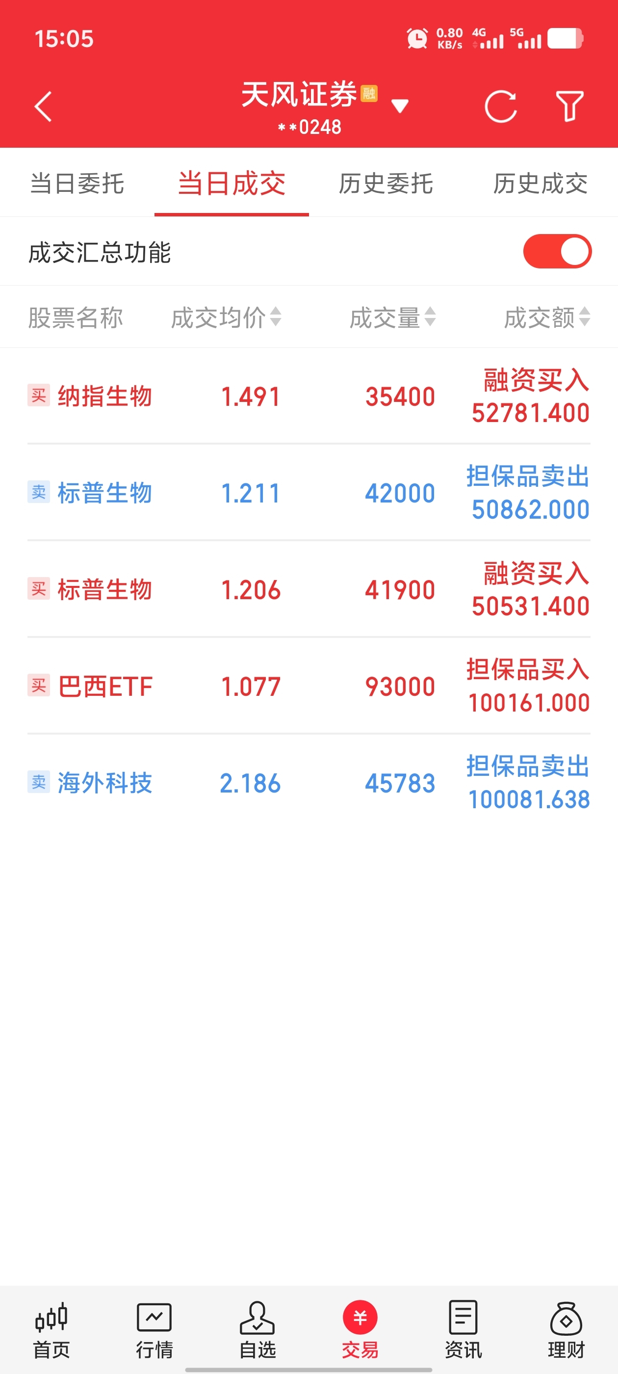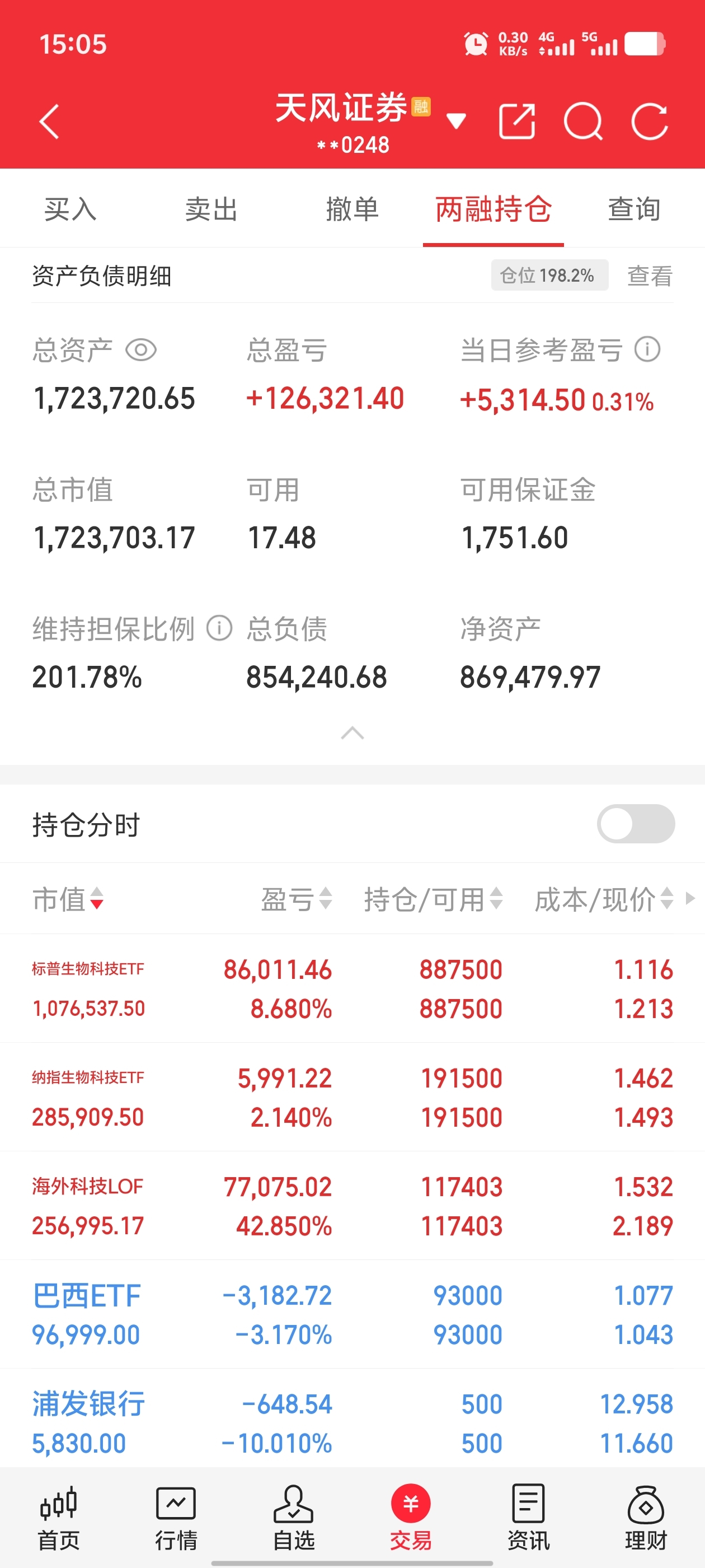 $海外科技LOF(SH501312)$ 由于木头姐近期较为萎靡的表现,今天信用账户继续卖出10万元的海外科技LOF,然后买入10万元的巴西ETF,再买入5万元的纳指生物科技ETF;普通账户清仓化工ETF,买入4万多元的巴西ETF。