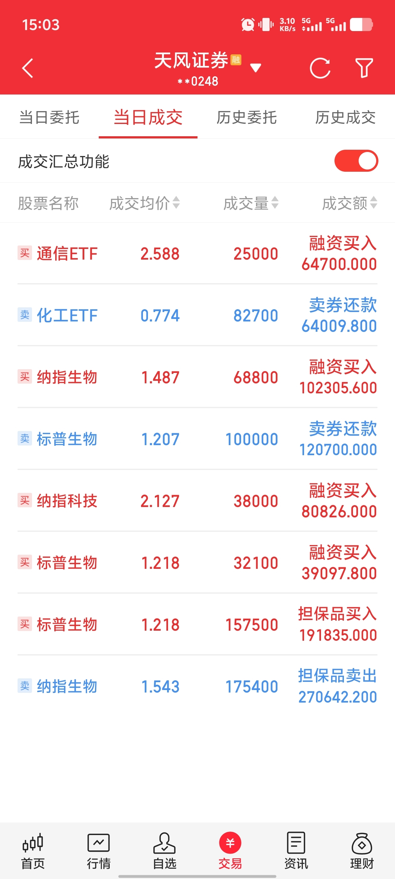 $海外科技LOF(SH501312)$ 今天回的还不如昨天亏的多,这两天各基金走出了股票一样的走势,我也做了一点小小的调仓,操作上今天普通账户清仓11万的纳指生物ETF,买入11万标普生物ETF,清仓化工3万多的ETF,买入3万多通信ETF;信用账户卖出17万纳指生物ETF,卖出6万化工ETF,买入6万通信ETF,买入11万标普生物,买入8万纳指科技ETF。
