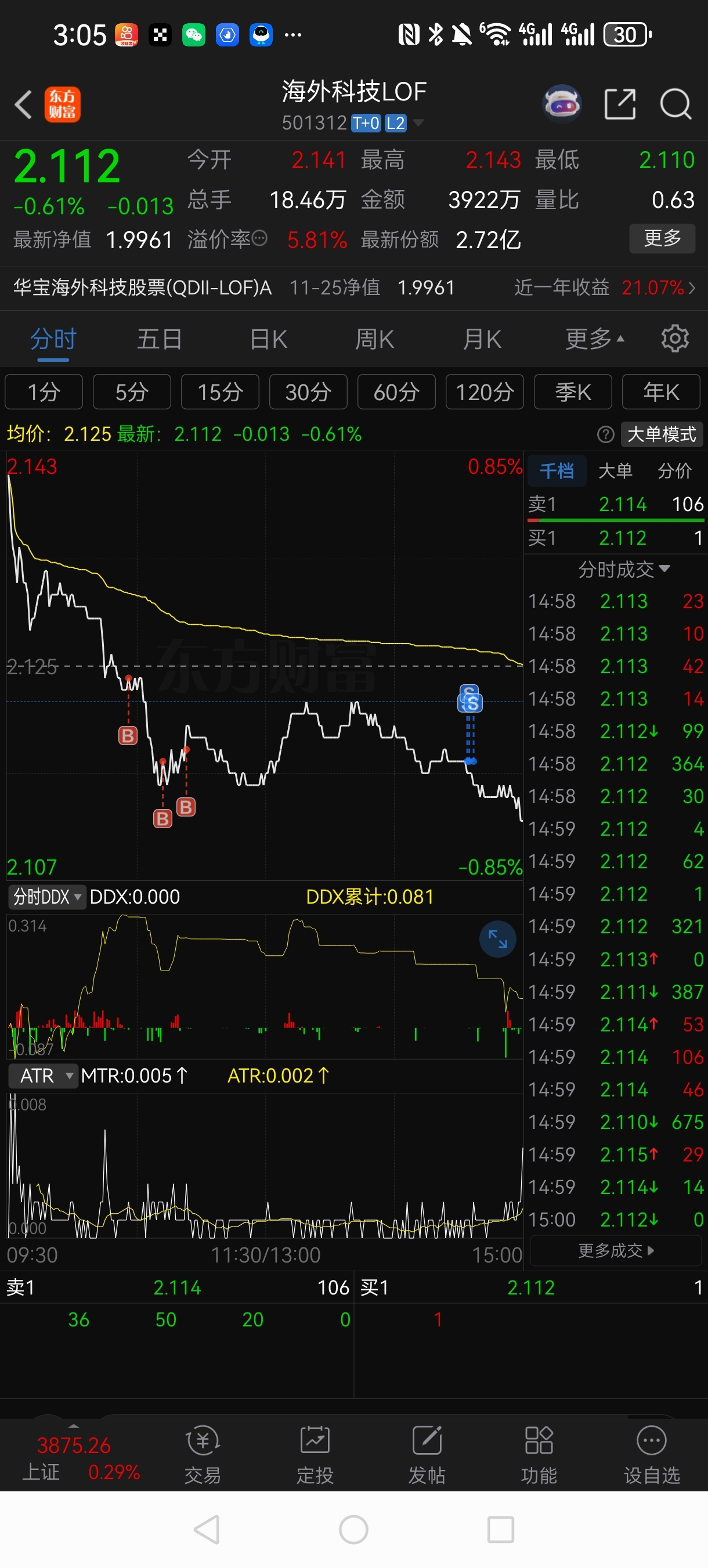$海外科技LOF(SH501312)$ 跑了一半。事情不对,赶紧撤退。。。下跌三个点,我再把这一半加回来,