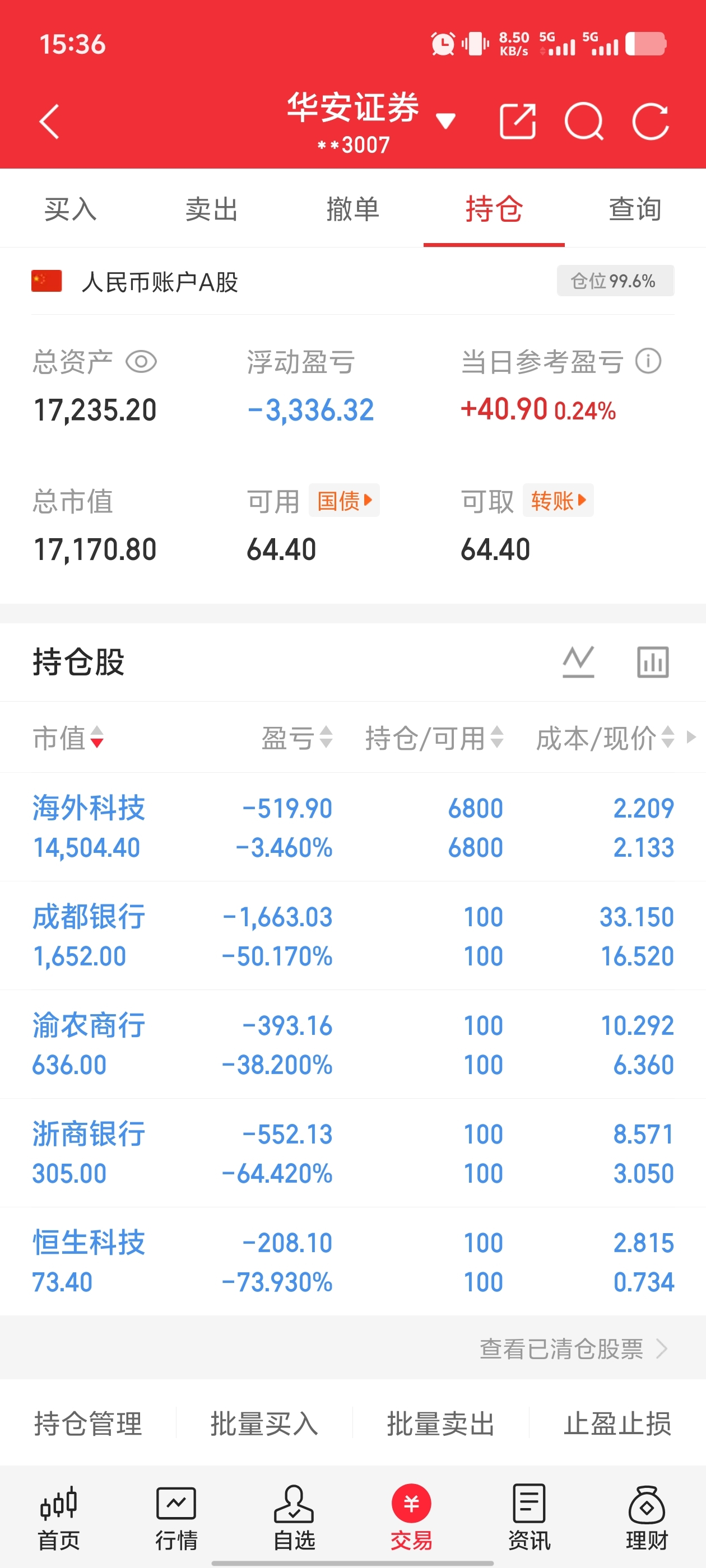 今日无操作,又巨亏2万,炒股太难了,每天以泪洗面!