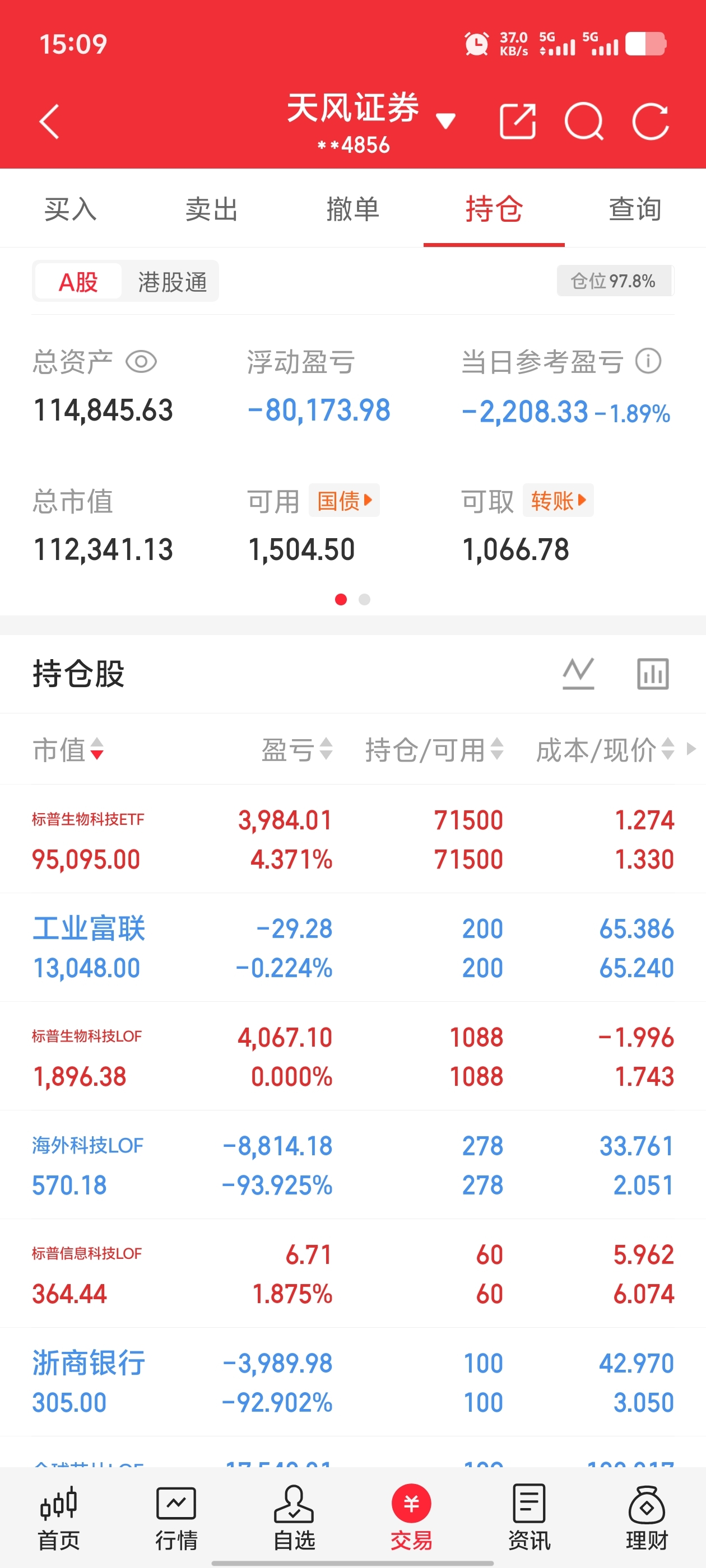 股市太难了,今天又巨亏接近4万,股海无涯,回头是岸,无底洞啊,完犊子了!今天无操