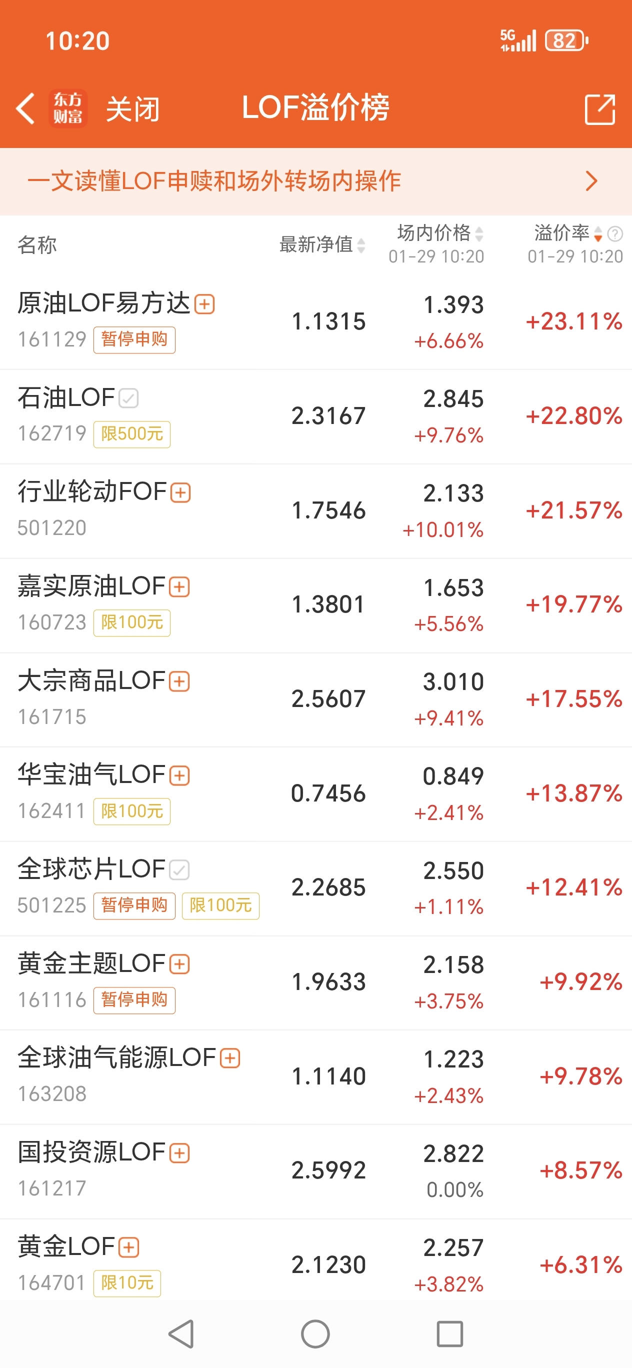 东财特意弄出来lof溢价排行榜,有人敢去套国内的基吗?油气我已经套了3天了