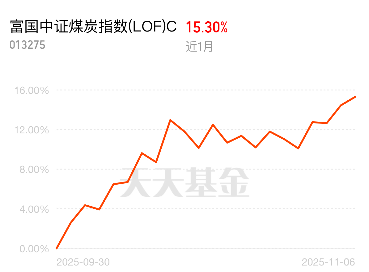 手里有鹏华钢铁,顺手搭了点富国中证煤炭C,押的是神华、陕煤这些央企煤炭核心,顺周期遇上中特估,近1月收正了15%,0.45%跟踪误差跟得紧,老将老船长心里踏实。$富国中证煤炭指数(LOF)C$