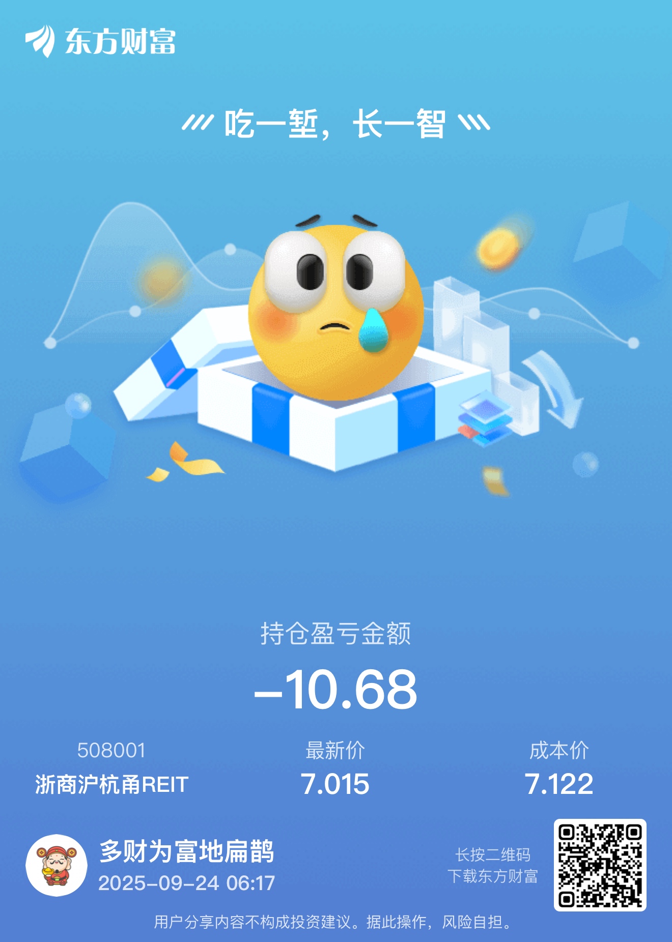 温馨提示: 1.根据《证券法》规定,禁止编造、传播虚假信息或者误导性信息,扰乱证券市场;2.用户在本社区发表的所有资料、言论等仅代表个人观点,与本网站立场无关,不对您构成任何投资建议。用户应基于自己的独立判断,自行决定证券投资并承担相应风险。《东方财富社区管理规定》