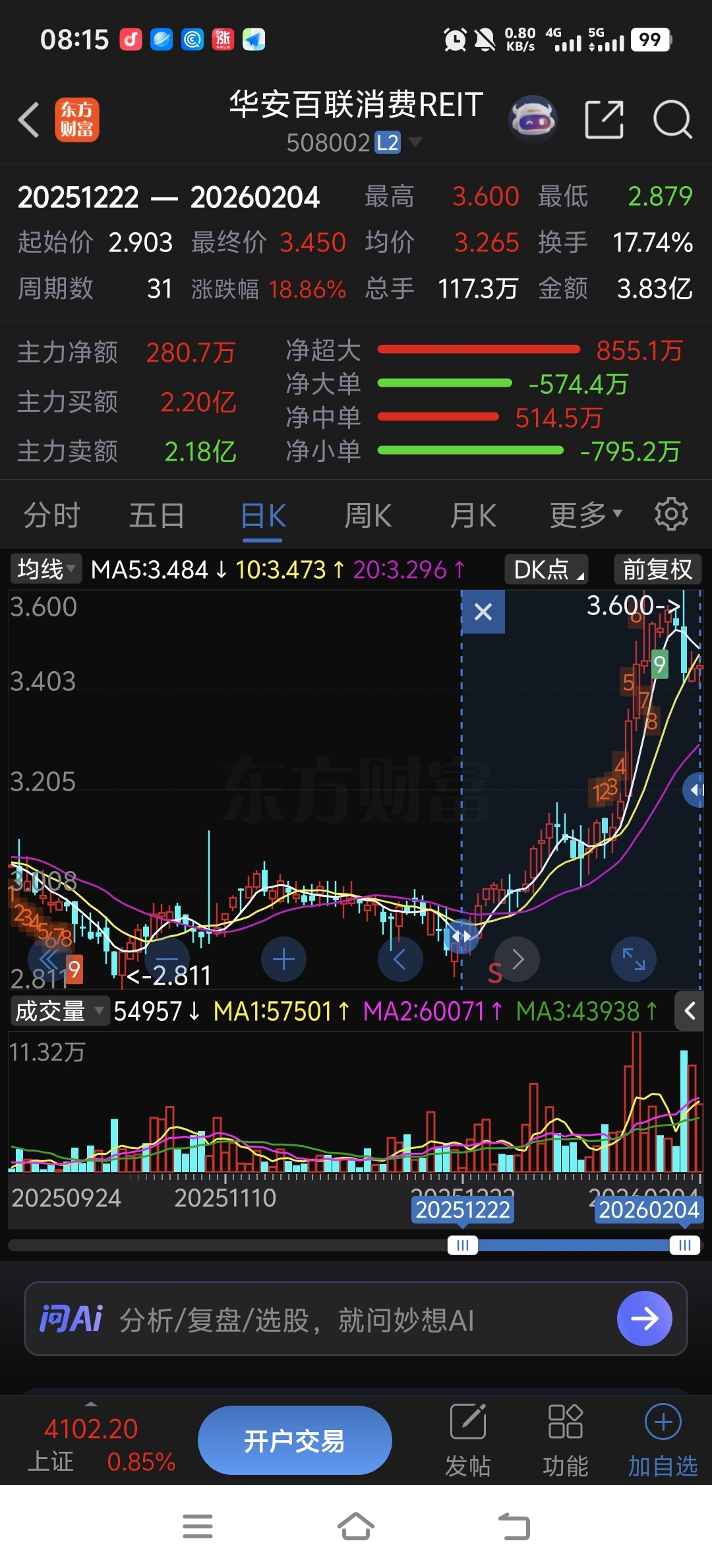 $华安百联消费REIT(SH508002)$ ————————上涨不少!