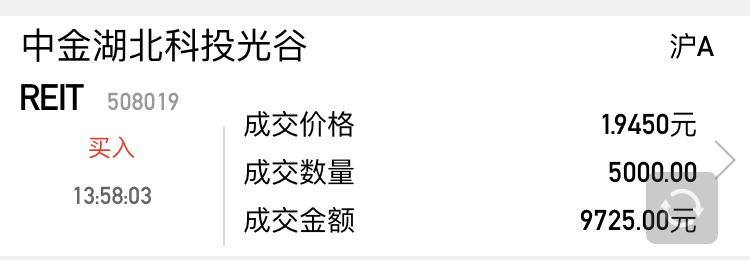 $中金湖北科投光谷REIT(SH508019)$ 一定会涨,主力开恩,让我赚点零花钱!