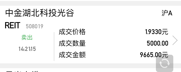 $中金湖北科投光谷REIT(SH508019)$ 卖了,小赚10元!