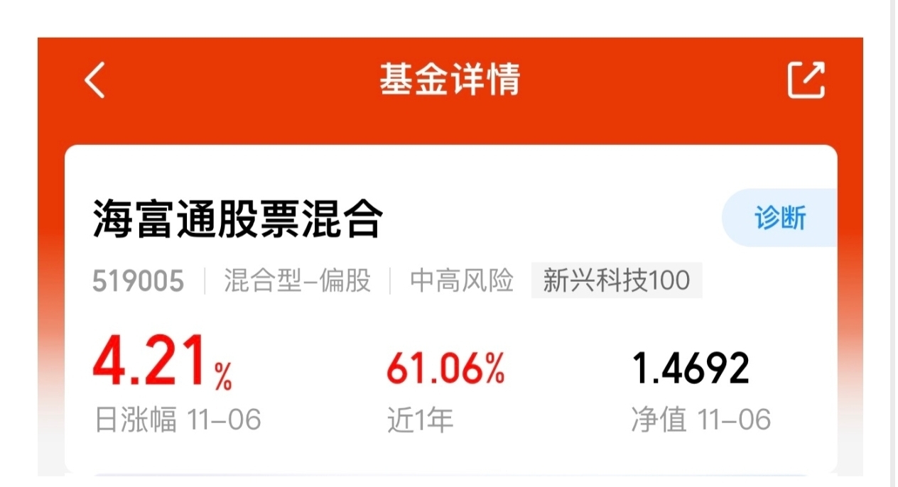 我持有的海富通基金涨了4.21%