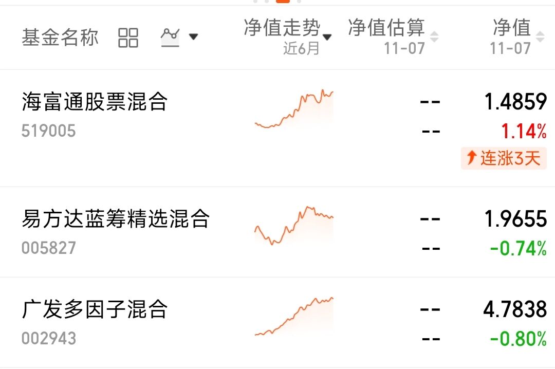 今天的行情始终没有放量,市场的人气稍微有所不足,在这样的成交情况下,许多科技类出现回调,但我发现$海富通股票混合(OTCFUND|519005)$今天上涨1.14%。还是让我挺惊讶的!$易方达蓝筹精选混合(OTCFUND|005827)$下跌0.74%,$广发多因子混合(OTCFUND|002943)$上涨0.8%。