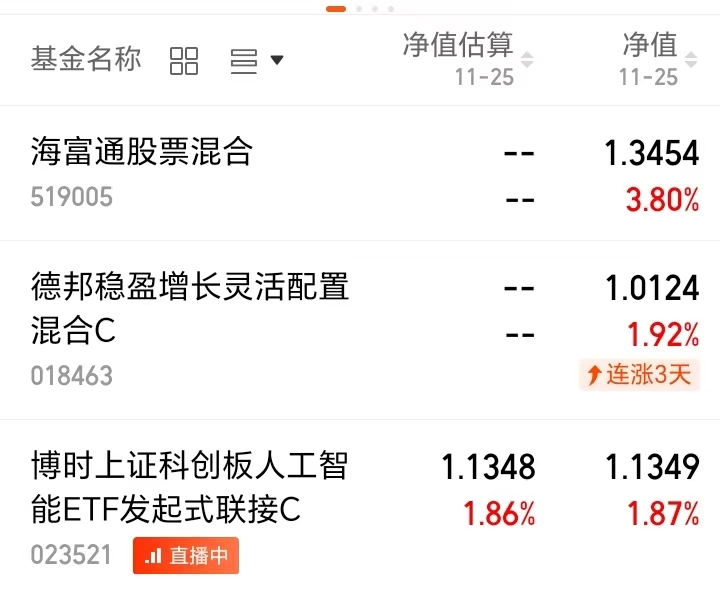 今天市场的AI 应用与算力链表现都不错,AI助手商业化落地、海外模型迭代带动板块展开修复行情, CPO、PCB概念等细分领域表现强势。一起看看今天的净值更新表现: