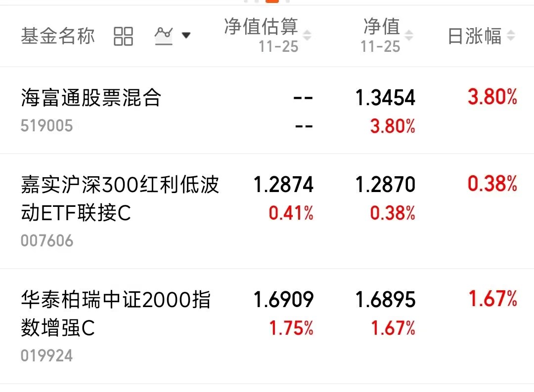 昨天和今天的反弹,你是否赚钱了?目前来说方向和节奏很难踏准,只能仓位均衡一些。$海富通股票混合(OTCFUND|519005)$上涨3.8%,$嘉实沪深300红利低波动ETF联接C(OTCFUND|007606)$上涨0.38%,$华泰柏瑞中证2000指数增强C(OTCFUND|019924)$上涨1.67%。