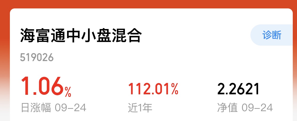 今天中小盘终于扬眉吐气了!海富通中小盘混合 今日大涨 3.22%,涨势相当给力。近期市场风格出现切换,资金重新关注成长性更强、估值更具弹性的小盘方向。海富通中小盘在选股上一直偏重优质制造、科技创新等高景气行业,抓住了本轮反弹的核心动能。随着市场信心回暖,中小盘板块有望继续活跃,而这只基金的进攻属性和选股能力,或许能在后市行情中继续发力!