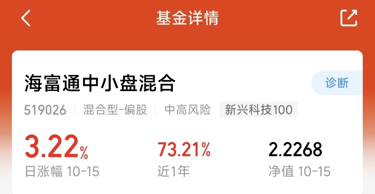 小盘科技相对于来看,弹性还是更大,$海富通中小盘混合$ 这只聚焦小盘科技的主动混合基金。今日涨幅3.22%。爆发力的表现是真的强。长期收益能力强。近一年涨幅73.21%。同类基金长期做到了优秀。期待继续突破。