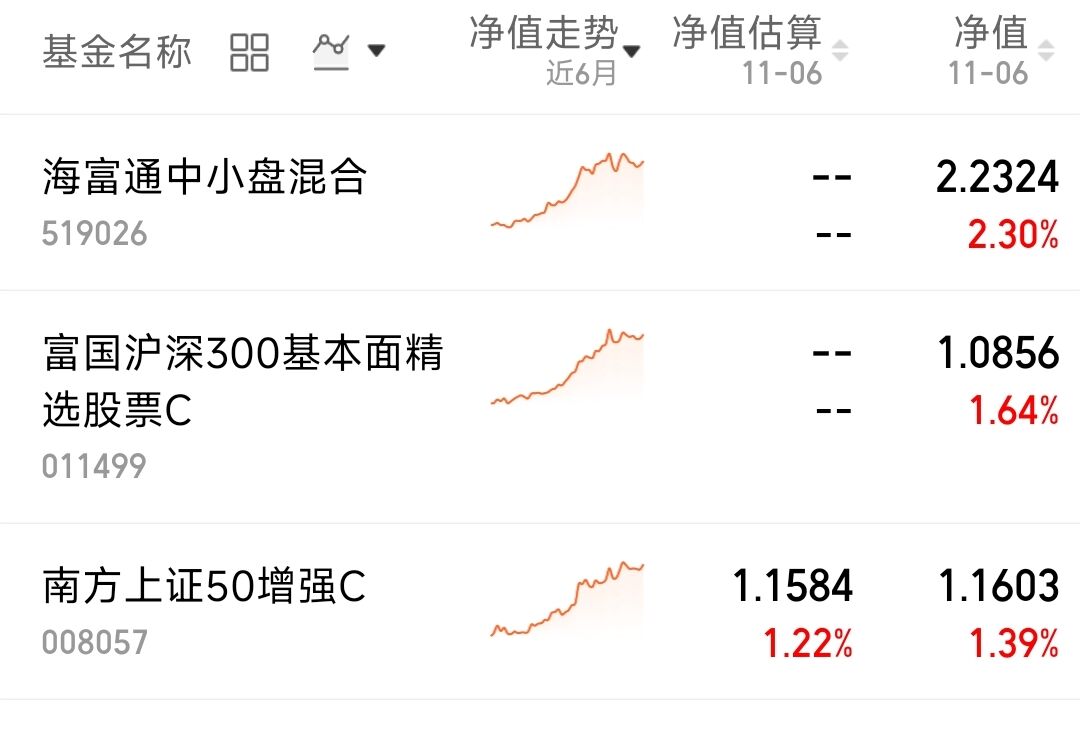 从今天的指数表现来看,中小微个股在大盘止跌之后,券商带动情绪,中小微跟随的最积极。$海富通中小盘混合(OTCFUND|519026)$上涨2.3%,弹性很不错!$富国沪深300基本面精选股票C(OTCFUND|011499)$上涨1.64%,$南方上证50增强C(OTCFUND|008057)$上涨1.39%。