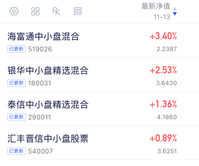 今天大盘低开高走,随着指数的拉升,整体行情迎来了久违的反弹,其中,中小盘股表现也不错,所以还是要分散配置一些的,感觉其弹性与成长具佳,一起来看相关基的净值情况吧!