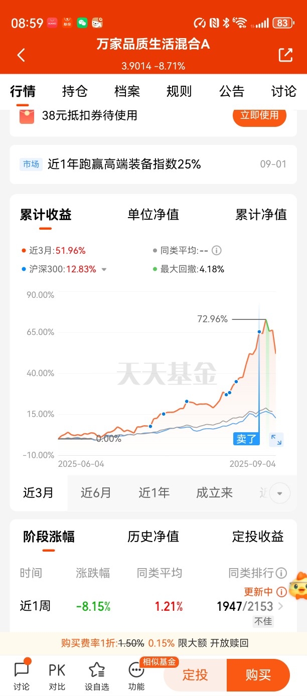 $万家品质生活混合A[519195]$ 谢谢经理,落袋为安。