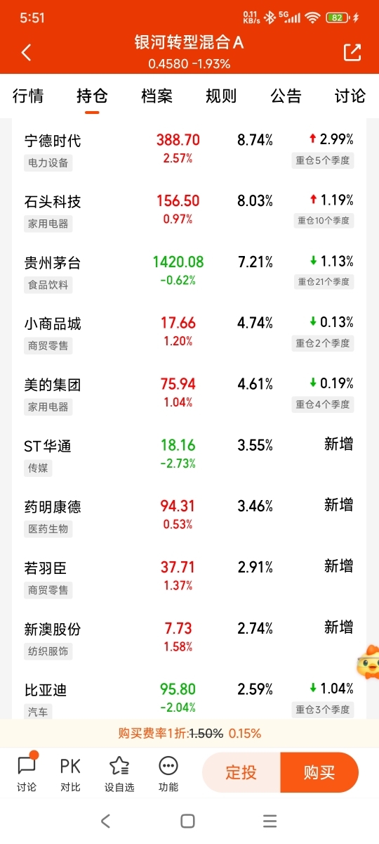 三季度报10大重仓股,ST华通两元多不买,现在十八块多才买入10重仓股,还有 若羽臣 今年股价都翻了四倍你才买入10大重仓股,是不是要当接盘侠,还有你看看10大重仓股都是些啥,比亚迪 贵州茅台 宁德时代,美的集团,等等是不是也想他们给带来翻倍收益,不知道你是怎么选股的,若羽臣我大赚离场了,你才进入,嗨……无语