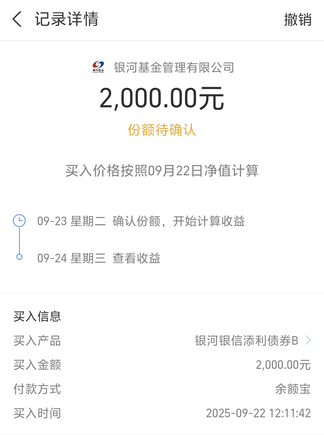$银河银信债券B$ :+2000元,继续定投!今天固收+的行情小幅回落,利率债和信用债都是大晴天。趁着目前的行情,我也是抓紧布局。期待后期的反弹上涨。